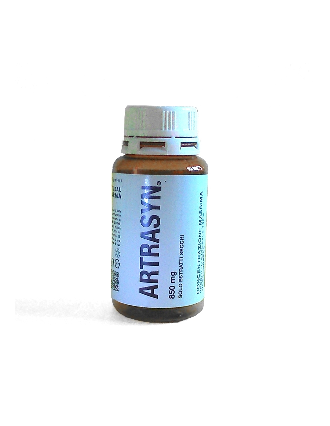 Integratore alimentare specifi co per le articolazioni e le cartilagini ARTRASYN combatte in modo naturale le alterazioni osteo-articolari causate dall’età. Coadiuvante d’elezione in tutti i trattamenti per le artriti, le artrosi e le patologie reumatiche in genere comprese le sindromi discali e nelle artrosi secondarie. Viene utilizzato con effi cacia (come coadiuvante naturale) contemporaneamente ai trattamenti dell’artrite scapolo-omerale, alle mani o agli arti inferiori, nella gotta a nella gonartrosi e coxartrosi e nel recupero post-operatorio a livello della colonna, del ginocchio e dell’anca. Effi cace antagonista naturale nelle molte forme reumatiche acute e croniche. Interviene sul naturale rissorbimento fi siologico degli osteofi ti e sul naturale catabolismo degli acidi urici. Non è un farmaco e non può dunque sostituire alcun tipo di trattamento medico specialistico. Tuttavia come coadiuvante (anche quando il paziente è sottoposto a regimi dietetici speciali) è un ideale agente fi siologico di sostegno, d’intervento, di recupero e di prevenzione.